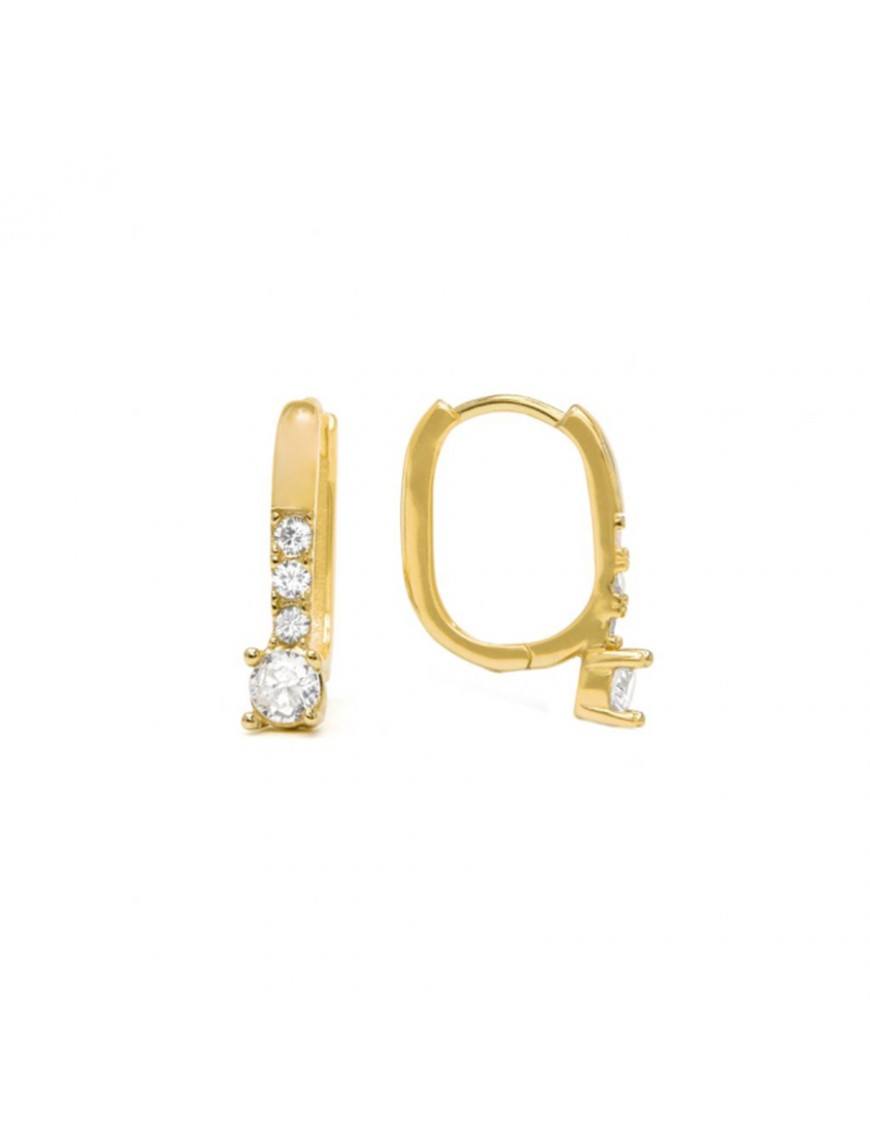 Pendientes Luxenter Kul Plata Circonitas EZ417Y0000. Elaborados en plata de ley con acabado dorado brillante. Tienen forma de aro mediano con circonitas blancas engastadas que recorren el aro aportando brillo. El diseño es clásico y elegante, ideal para uso diario o eventos. Cuentan con cierre cómodo y seguro.