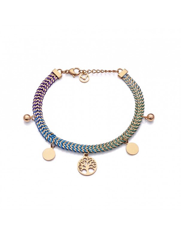 Pulsera Viceroy Kiss de acero para Mujer 14036P01013. Realizada con acero ip dorado, un cordón de colores y colgantes. Longitud de 17.5cm y cadenilla de ajuste de 2cm.