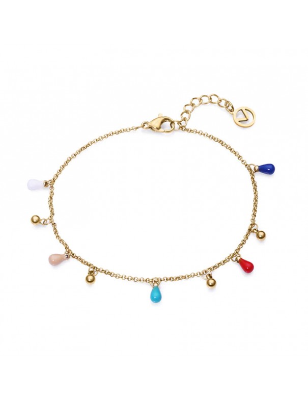 Pulsera Viceroy Kiss de acero para Mujer 14047P01012. Fabricada con acero ip dorado y colgantes con esmaltes de colores. Largo de 17,5cm. Garantía de tres años.