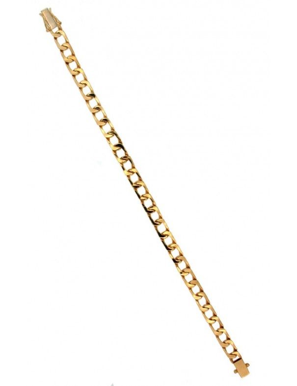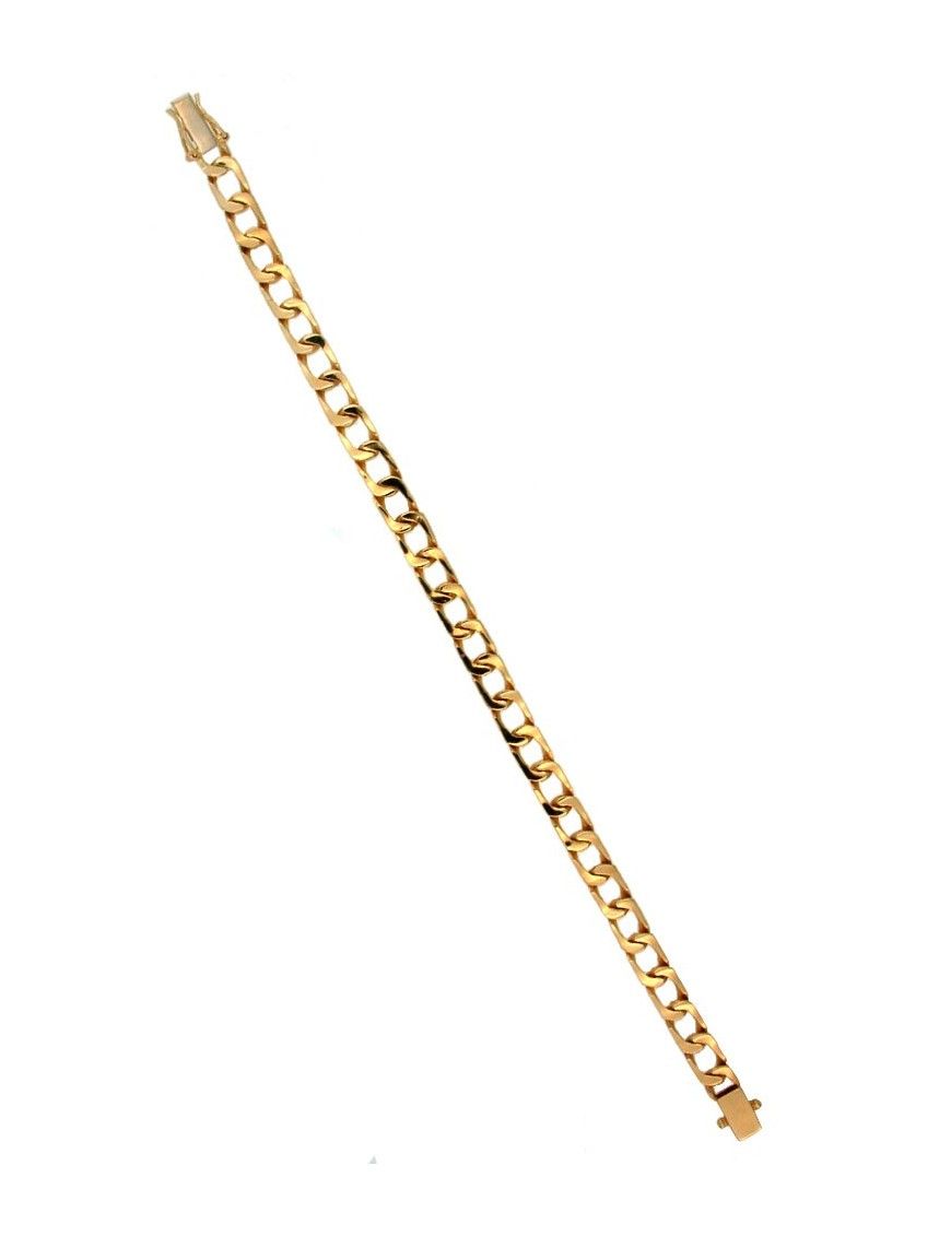 Pulsera Oro 18Kts mujer 1041-PA. Consiste en una pulsera de eslabones rectangulares que está fabricada en oro amarillo de 18Kts, 750mls, tiene una longitud de 20cm y un ancho de 5mm y tiene un cierre especial de seguridad y cuenta con 2 años de garantía.