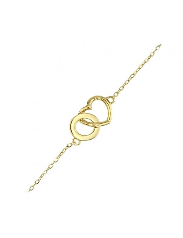Pulsera Oro Amarillo 18K Corazón Y Círculo 8194B, fabricada en oro amarillo de 18k, 18cm de largo y cadena ajustable en dos posiciones (a 15cm y 18cm). Motivo central con forma de corazón y círculo entrelazados, con un tamaño de 17mm. Cierre de mosquetón.