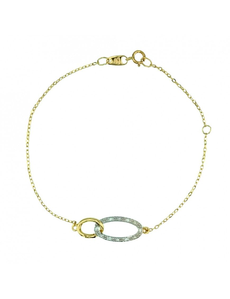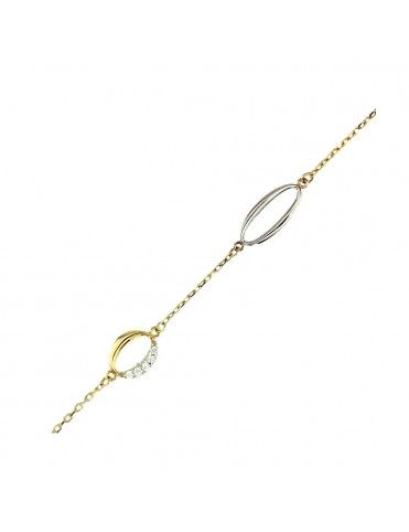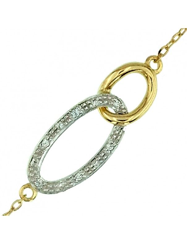 Pulsera Oro Amarillo 18k Óvalos 8195B, fabricada en oro amarillo, oro blanco de 18k y circonitas. Cadena ajustable en dos posiciones (en 15cm y 18cm). Con una longitud de 18cm. Cierre de mosquetón.