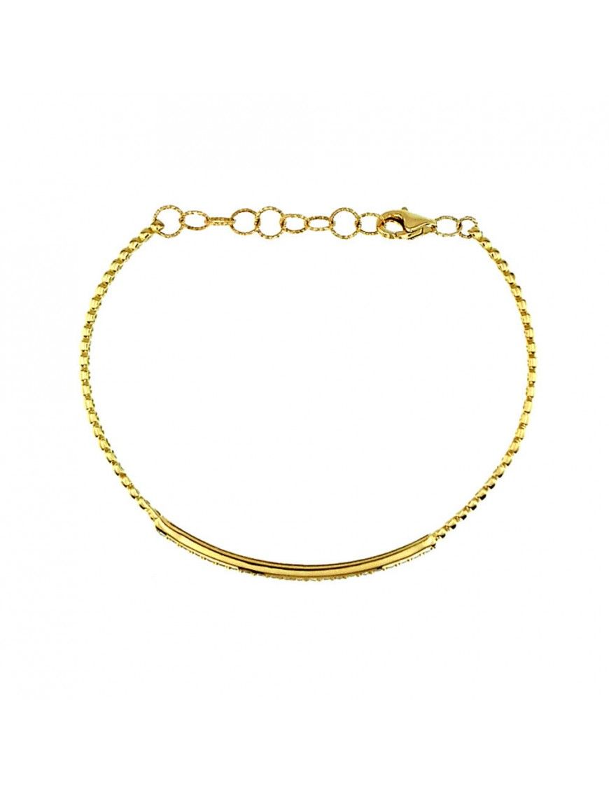 Pulsera Oro Amarillo 18k Semirígida Circonitas 120-01184, fabricada en oro de 18k y un total de 22 circonitas. Cadenilla de ajuste de 3cm. Cierre de mosquetón. Peso 4,070gr.