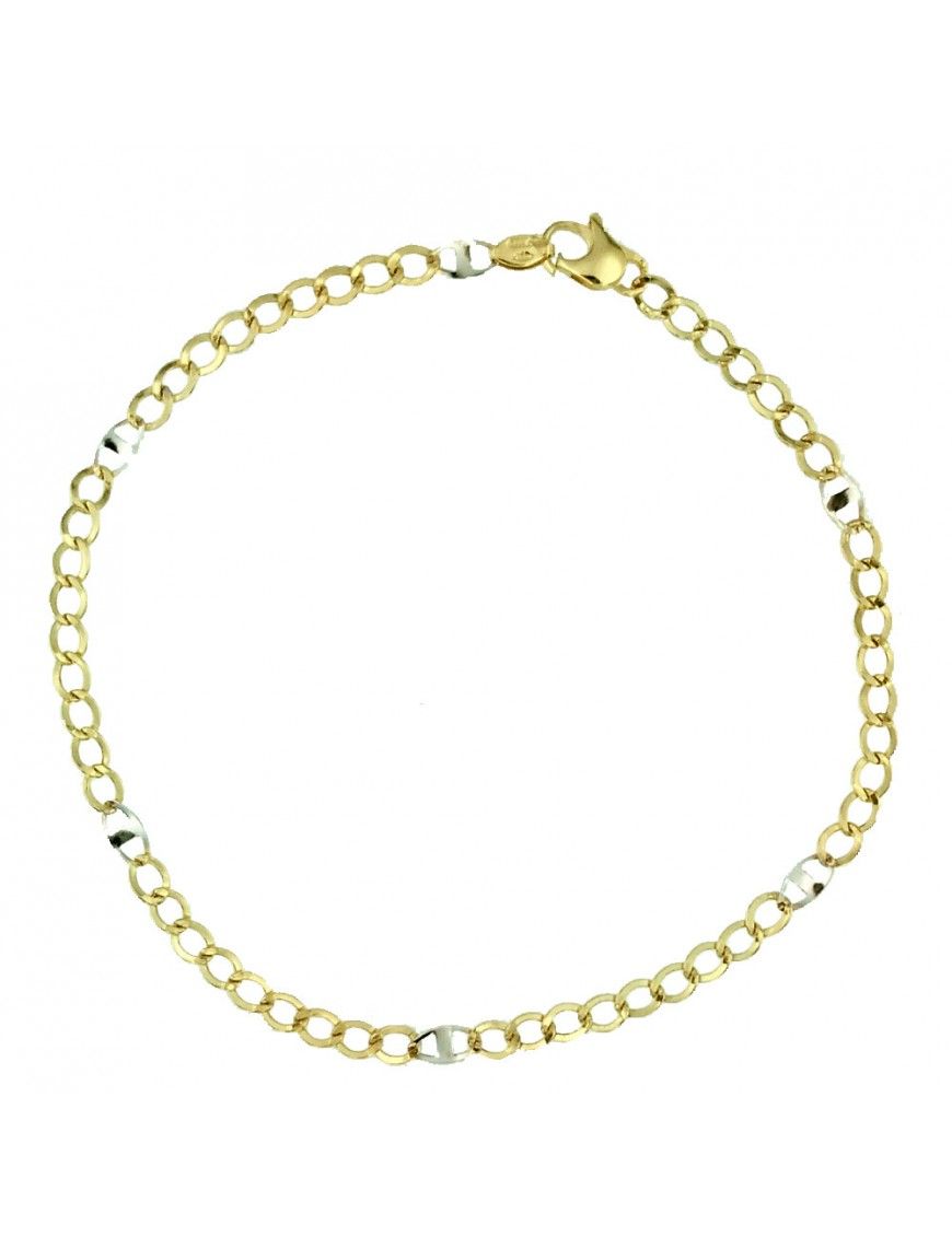 Pulsera Oro 18K Amarillo Y Blanco 624-00194, fabricada en oro amarillo y blanco. Longitud de 19,5cm. Cinco eslabones dobles en oro blanco. Cierre de mosquetón.