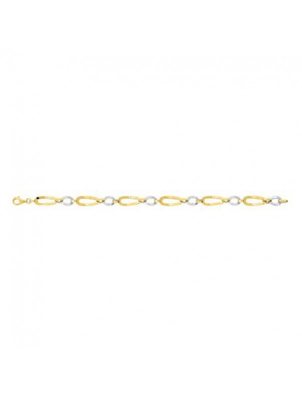Pulsera Oro 9kts Bicolor Eslabón Hueco 9K7381G. Pulsera de oro amarillo y blanco de 9kts con diseño de eslabón hueco. Tiene una medida 20cm y peso de 3.70g.