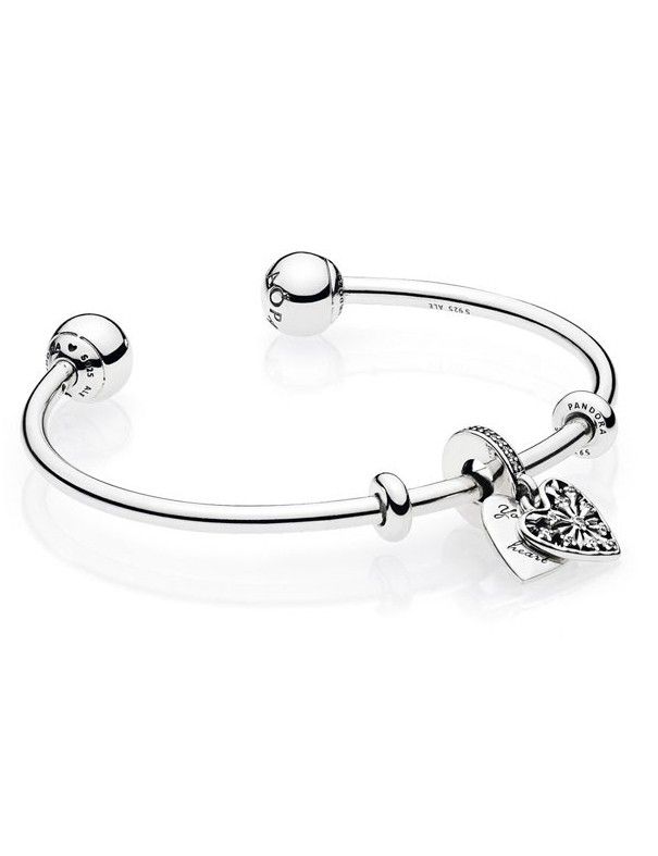 Set Pulsera Pandora Plata y charm colgante B800664-1_WHS pulsera original de la marca Pandora. El precio de esta pulsera con los abalorios por separado es de 124€ en promoción su precio es de 99€. Es un brazalete abierto realizado en plata de ley, 925mls, con los cierres terminados en bola con el logo grabado. Gift Set Pulsera abierta con charm colgante Alegría Navideña.