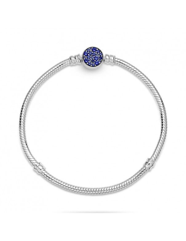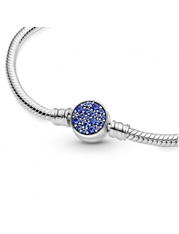 Pulsera Pandora Cierre Disco Azul Brillante 599288C01-17, en plata de primera ley 925mls para charms y adornada con circonitas. Talla 17.