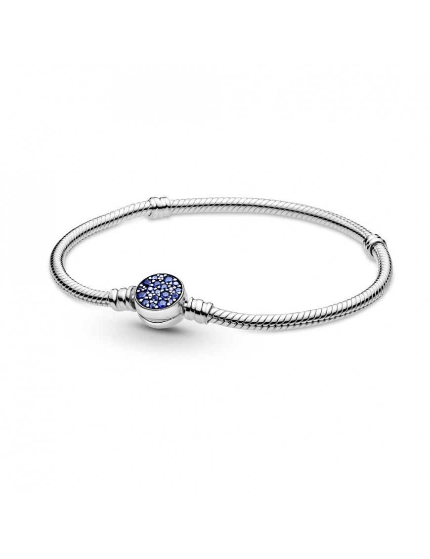 Pulsera Pandora Moments Cierre Disco Azul Brillante 599288C01-18, en plata de primera ley 925mls y adornadas con circonitas. Talla 18.
