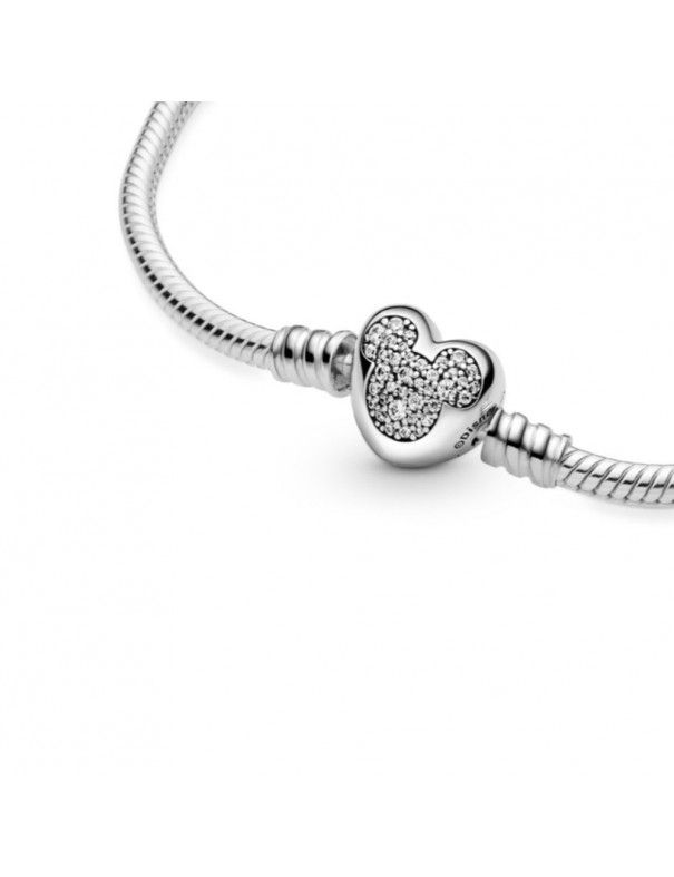Pulsera Pandora Cierre Mickey Mouse 599299C01-18, en plata de primera ley 925mls para charms y adornada con circonitas. Talla 18.