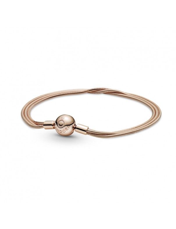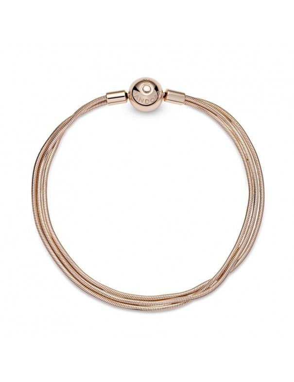 Pulsera Pandora Moments Rose Multi Cadena 589338C00-19, una aleación única de metales con recubrimiento en oro de segunda ley 14k. Medida de 19cm.