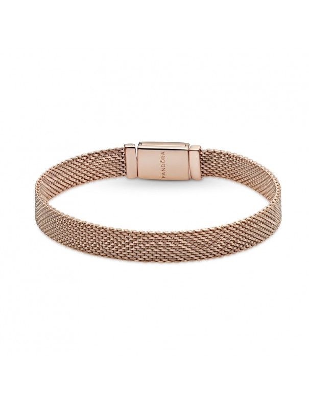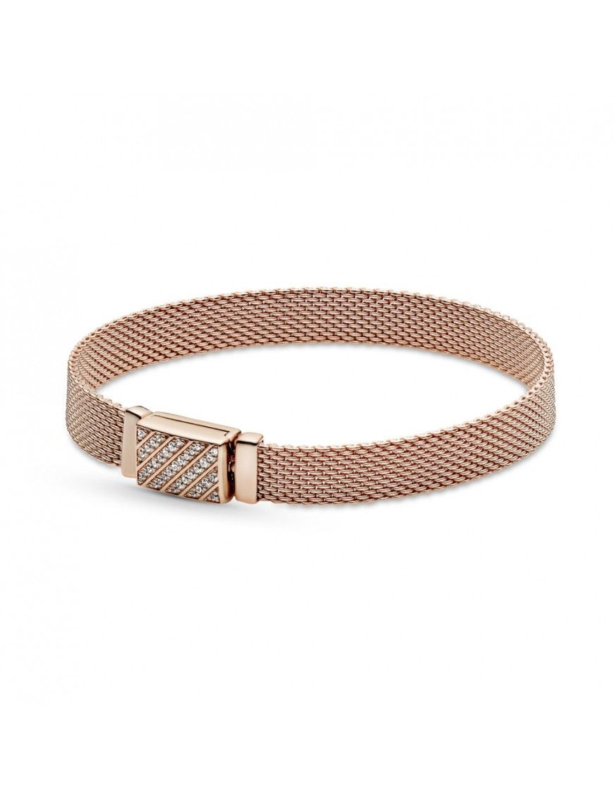 Pulsera Pandora Reflexions Rose 589358C01-17, una aleación de metales con recubrimiento en oro de segunda ley de 14k. Cierre decorado con circonitas. Medida de 17cm.