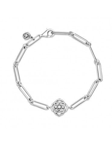 Pulsera Pandora Eslabones Pétalos De Rosa 599409C01-16, en plata de primera ley 925mls y circonitas blancas. Longitud de 16cm. Cierre de mosquetón.