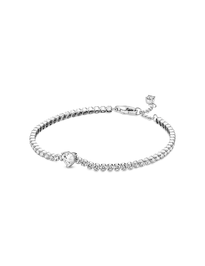 Pulsera Pandora Corazón Brillante 590041C01-20, en plata de primera ley 925mls decorada con circonitas. longitud de 20cm ajustable. Cierre de mosquetón.