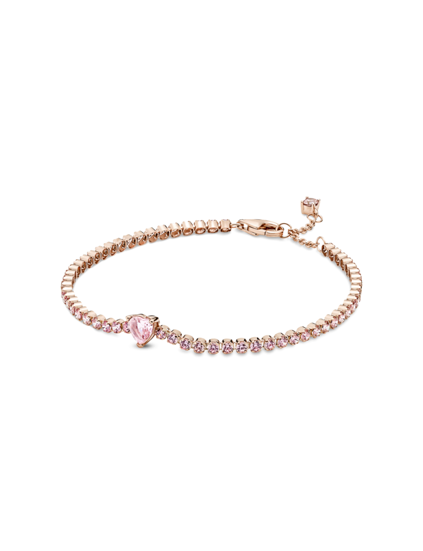 Pulsera Pandora Corazón Brillante 580041C01-20, aleación única de metales con recubrimiento electrolítico en oro de segunda ley de 14kts. Decorada con circonitas. Longitud de 20cm ajustable. Cierre de mosquetón.