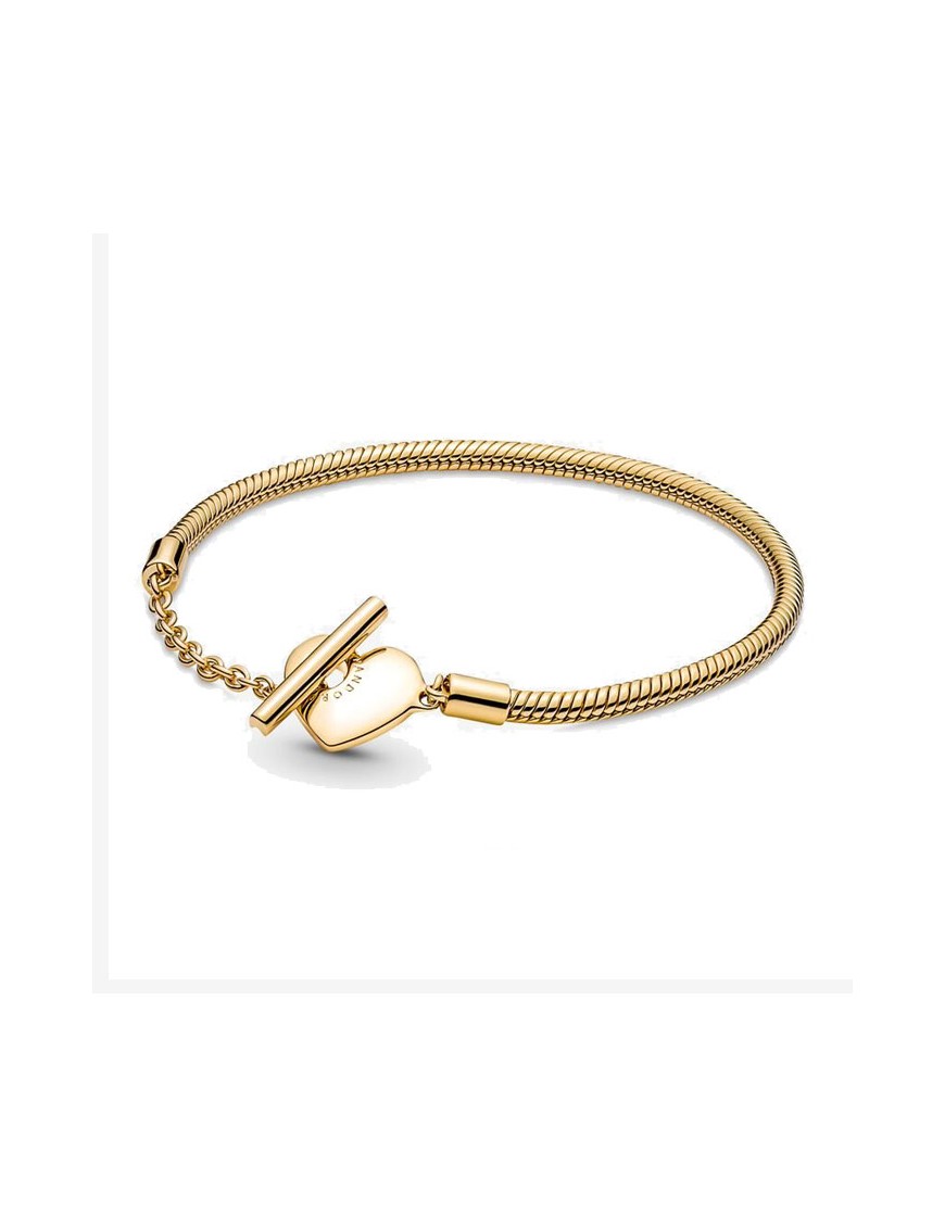 Pulsera Pandora Cierre en T y Corazón 569285C00-19, en plata de primera ley 925mls con recubrimiento electrolítico de oro de 18kts. Longitud de 19cm.