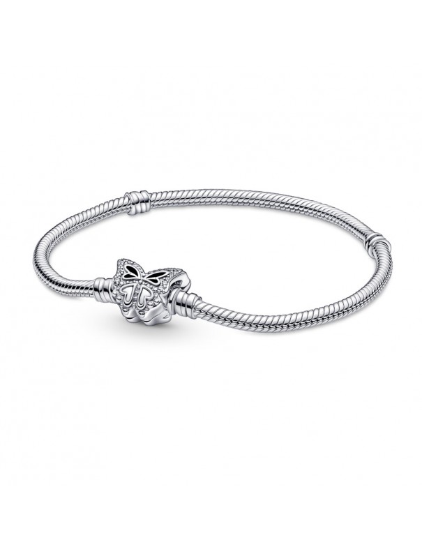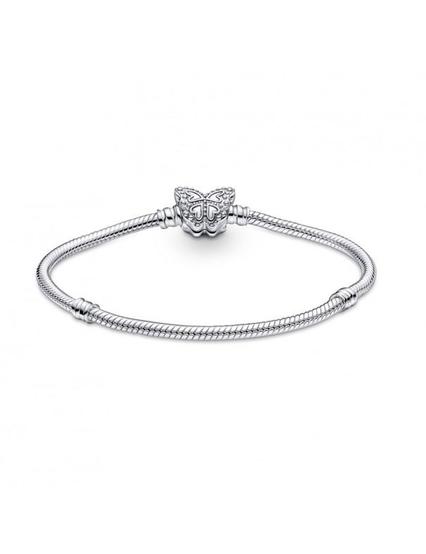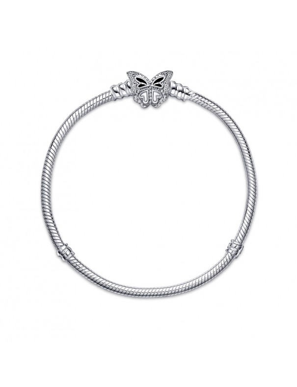 Pulsera Pandora Moments Cierre Mariposa 590782C01-17, en plata de primera ley 925mls. Longitud de 17cm. Cierre decorado con forma de mariposa.