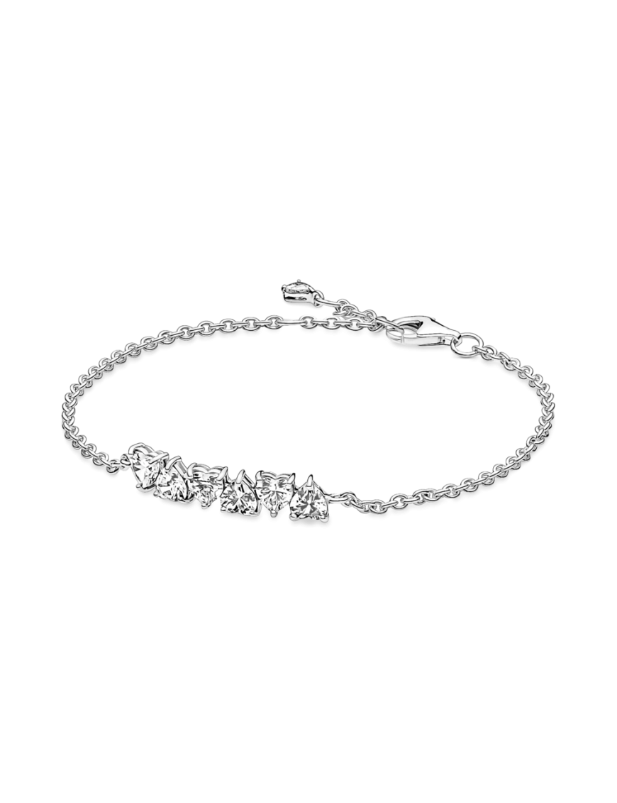 Pulsera Pandora Cadena Corazones Sin Fin Brillantes 591162C01-18, en plata de primera ley 925mls. Decorado con circonitas transparentes con forma de corazón. Cierre de mosquetón. Longitud de 18cm.
