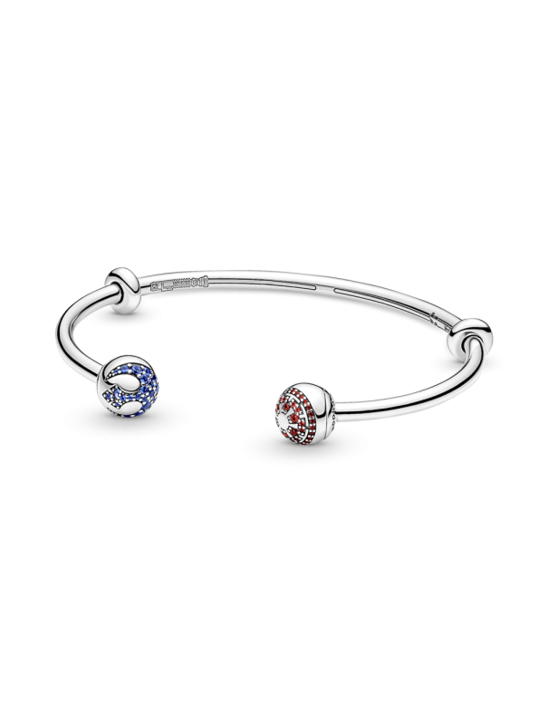 Pulsera Pandora Rígida Abierta lado Oscuro Y Lado Luminoso 591139C01-2, en plata de primera ley 925mls decorada con circonitas de color.
