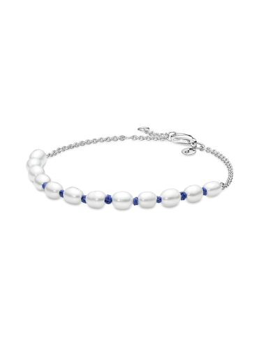 Pulsera Cordón Azul Perlas Cultivadas de Agua Dulce 591689C01-20, en plata de primera ley 925mls, decorada con cordón azul y perlas cultivadas de agua dulce adornado con nailón azul. Longitud de 20cm ajustable. Cierre de mosquetón.