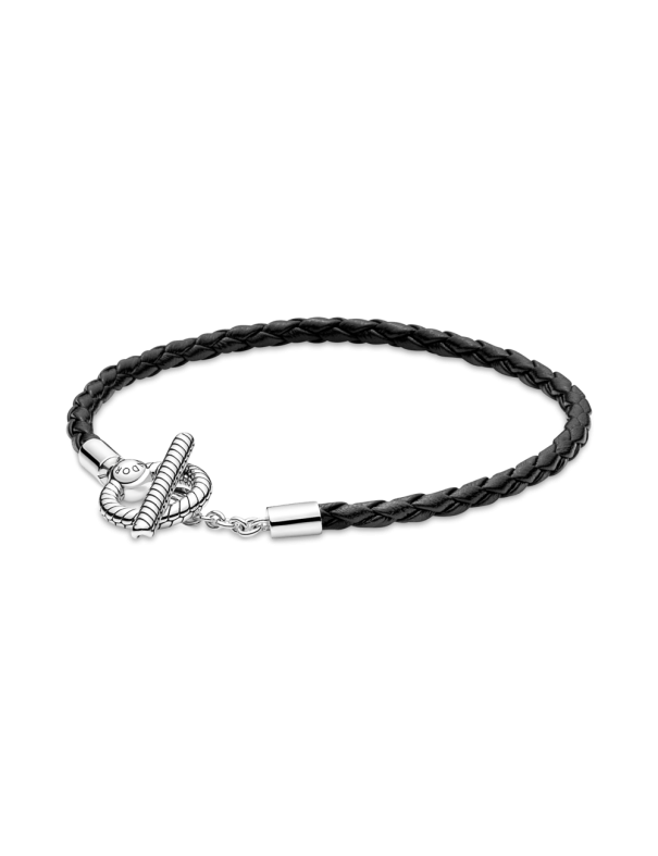 Pulsera Pandora Moments Cuero Trenzado con Cierre en Forma de T 591675C01-S1, longitud de 17.5cm.