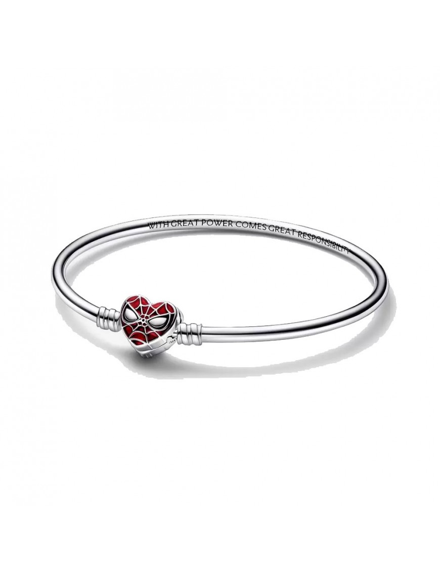 Pulsera rígida con Cierre de Máscara Spider-Man de Marvel 592324C01-17, en plata de primera ley 925mls, decorada con esmalte de color y grabación "with great power comes great responsability". Equivale a un tamaño de 17cm.