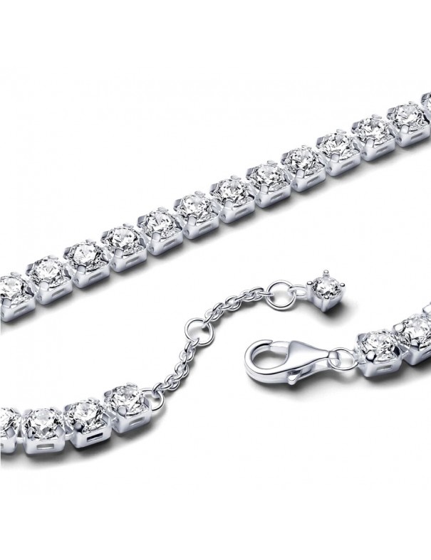 Pulsera Pandora Tenis Ancha Brillante 593539C01-18. Es de plata de primera ley de 925 mls con circonitas. Garantía de tres años.