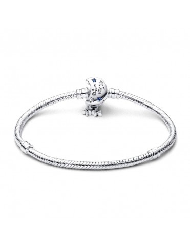 Pulsera Cadena de Serpiente con Cierre Luna Brillante 592819C01. Pulsera fabricada en plata de primera ley con cadena de serpiente adornada con cierre en forma de luna creciente con cristales en color azul y circonitas transparentes además de una inscripción en la parte trasera en la que pone "dream big" (sueña a lo grande).