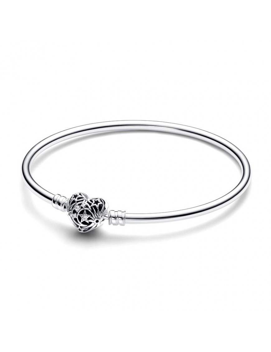 Pulsera Rígida con cierre de Corazón Celestial 593400C01-21. Fabricada en primera plata de ley con pulsera rígida acabada con un cierre en forma de corazón celestial decorado con brillantes gemas. Es una talla 21. Garantía de 3 años.