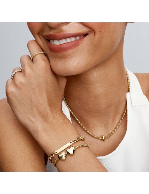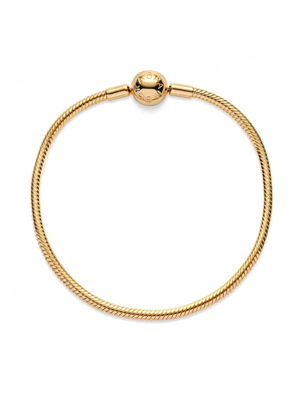 Pulsera Pandora Cadena de Serpiente 568748C00-17. Fabricada en aleación de metales con recubrimiento en oro de 14k, ideal para personalizar con tus charms favoritos o usar sola para un look elegante. Su diseño flexible y duradero con un cálido brillo dorado la convierte en una pieza versátil para cualquier ocasión. Es una talla 17.