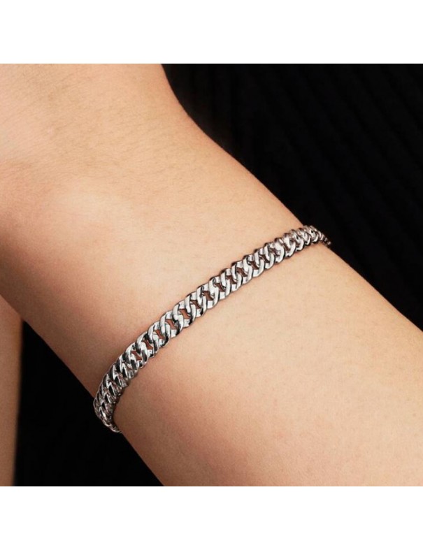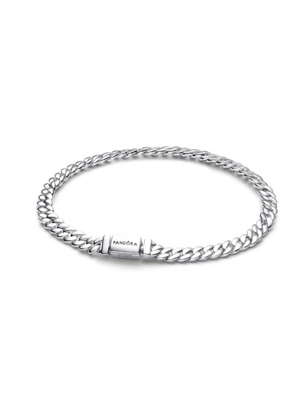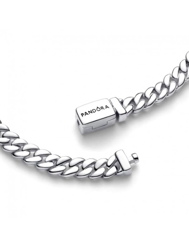 Pulsera Pandora Cubana 594367C00-16. Estilo cadena cubana realizada en plata de primera ley con acabado pulido plateado, con eslabones sólidos y bien definidos. Su cierre seguro con logotipo pandora la hace cómoda para uso diario. El diseño robusto y elegante funciona tanto sola como con charms.