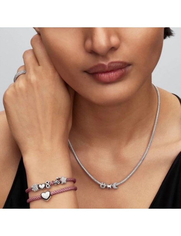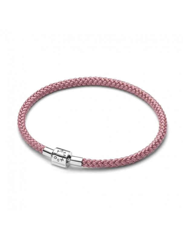 Pulsera Pandora Cordón Rosa Radiante 594530C01-S1. Pulsera de cordón textil en tono rosa brillante con cierre de plata de ley 925 y diseño sencillo y casual que se puede llevar sola o con charms. Su forma es de pulsera ajustable tipo cordón rosa radiante, ideal para looks diarios.