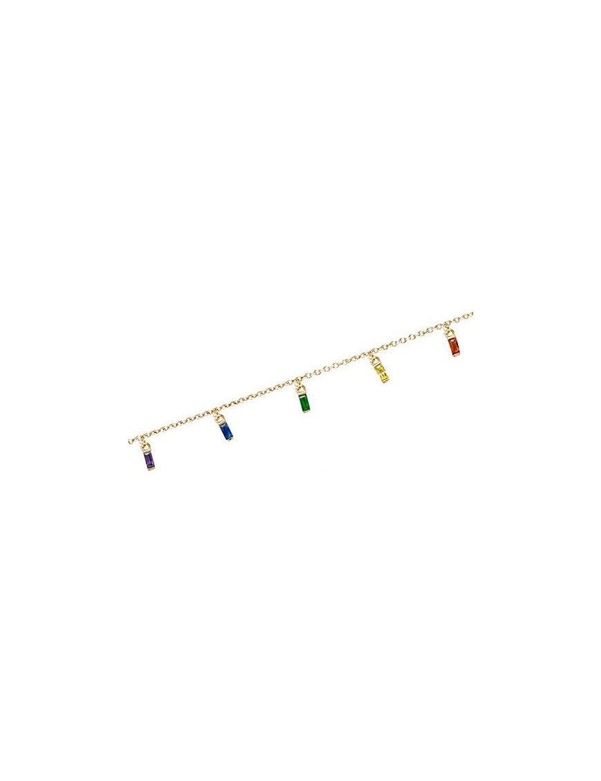 Pulsera De Plata Chapada Colores 32HX0760X, fabricada en plata chapada en color dorado. Cierre de mosquetón y circonitas de colores. Garantía de dos años contra defectos de fabricación.