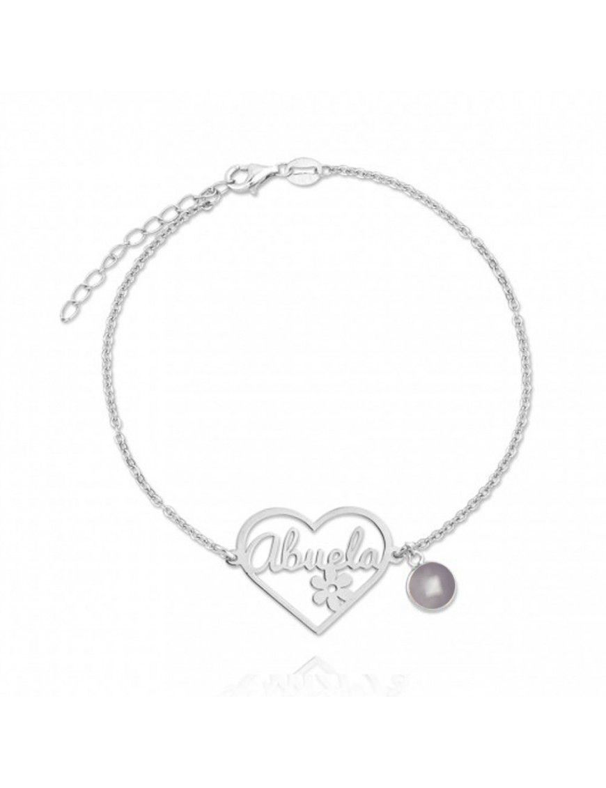 Pulsera De Plata Abuela Corazón 115580, fabricada en plata de primera ley 925mls y baño de rodio. Corazón de 18X20mm. Longitud de 17cm y cadenilla de ajuste de 3cm. Cierre de mosquetón.