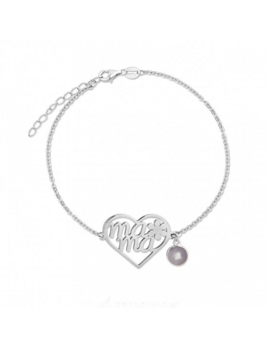 Pulsera De Plata Mamá Corazón 115592, fabricada en plata de primera ley 925mls y baño de rodio. Corazón de 18X20mm. Longitud de 17cm y cadenilla de ajuste de 3cm. Cierre de mosquetón.