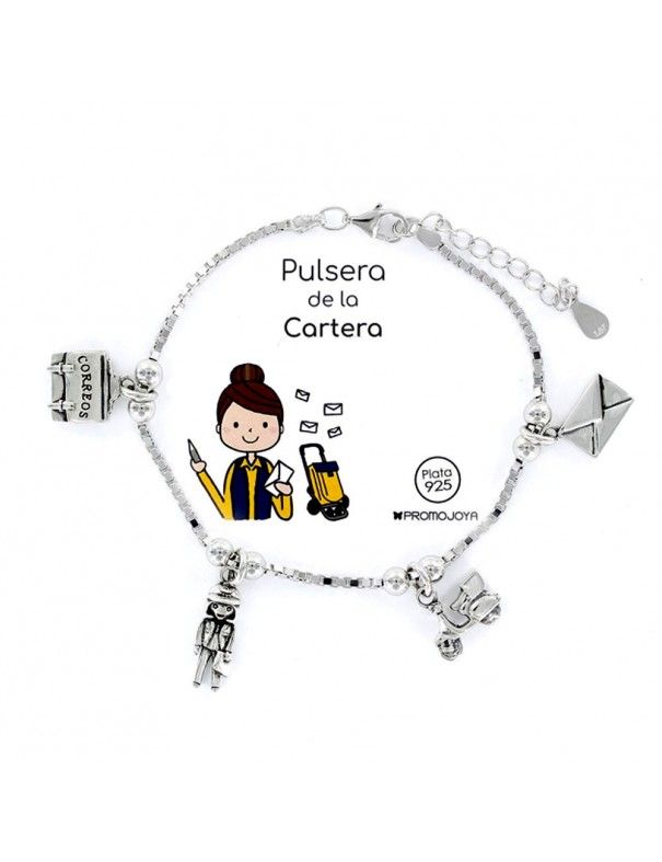 Pulsera Plata Mujer Cartera 9105687, en plata de primera ley 925mls y baño de rodio. Cadena de 18cm ajustable. Adornada con cuatro colgantes. Cierre de mosquetón.