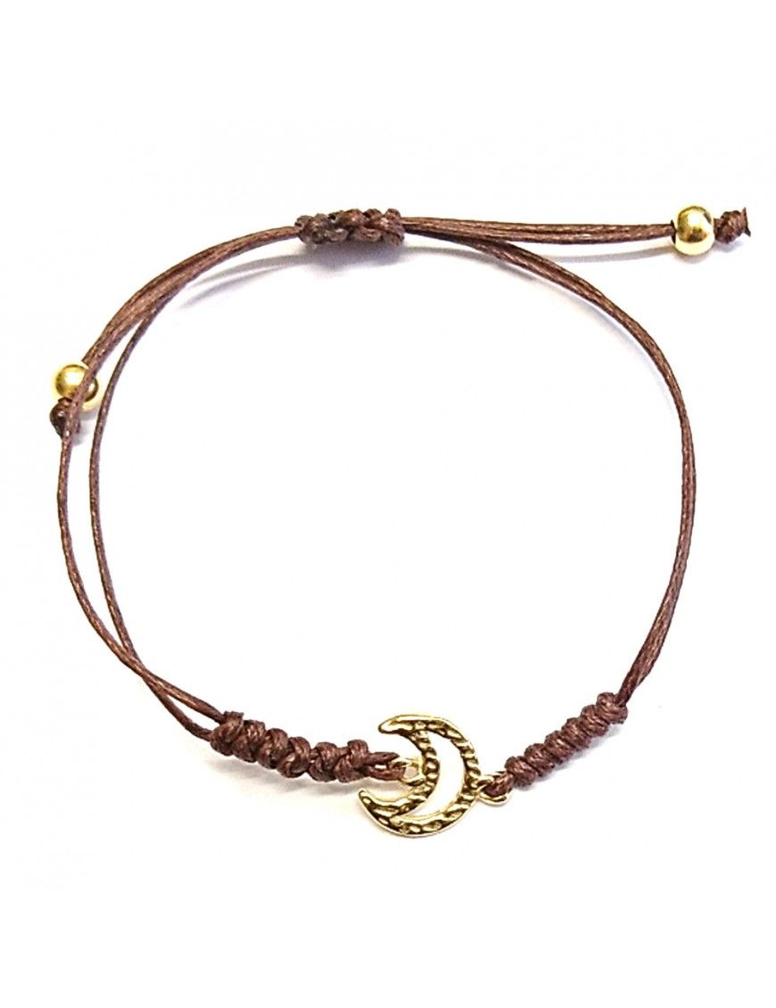 Pulsera Plata Chapada Macramé Luna 048310-2-1, en plata de primera ley 925mls bañada en oro de 18kts de 2 micras. Pulsera de cordón marrón ajustable. Diámetro máximo de 23cm.