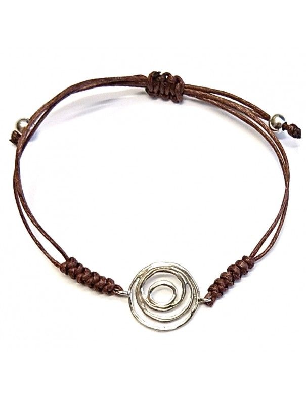 Pulsera De Plata Macramé Espiral 532-048480-1-1, en plata de primera ley 925mls y baño de rodio. Pulsera de cordón en color marrón ajustable. Diámetro máximo de 23cm.