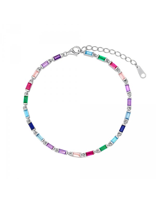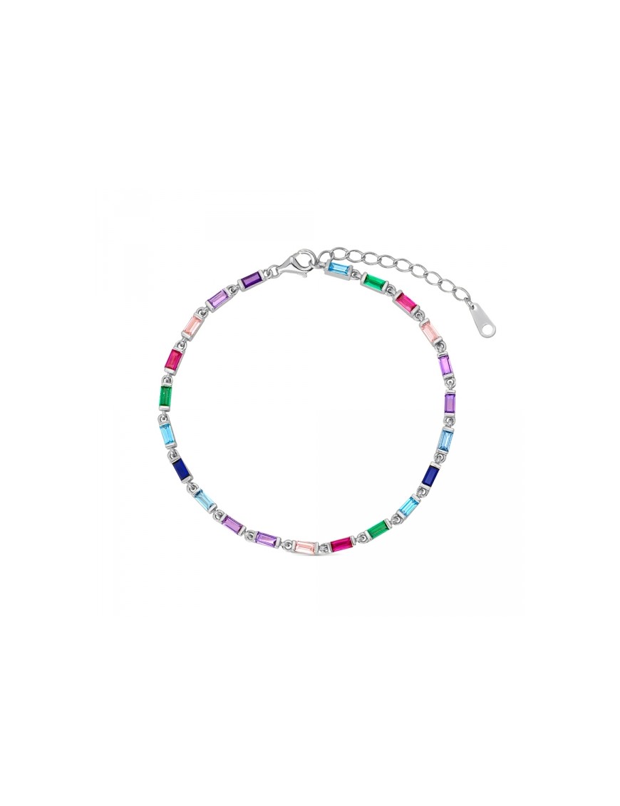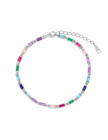 Pulsera De Plata Baguettes Multicolor 9110876, en plata de pirmer aley 925mls y circonitas multicolor tipo baguette. Cierre de mosquetón. Longitud de 21cm ajustable mediante cadenilla de ajuste de 3cm.
