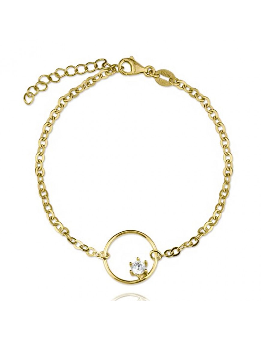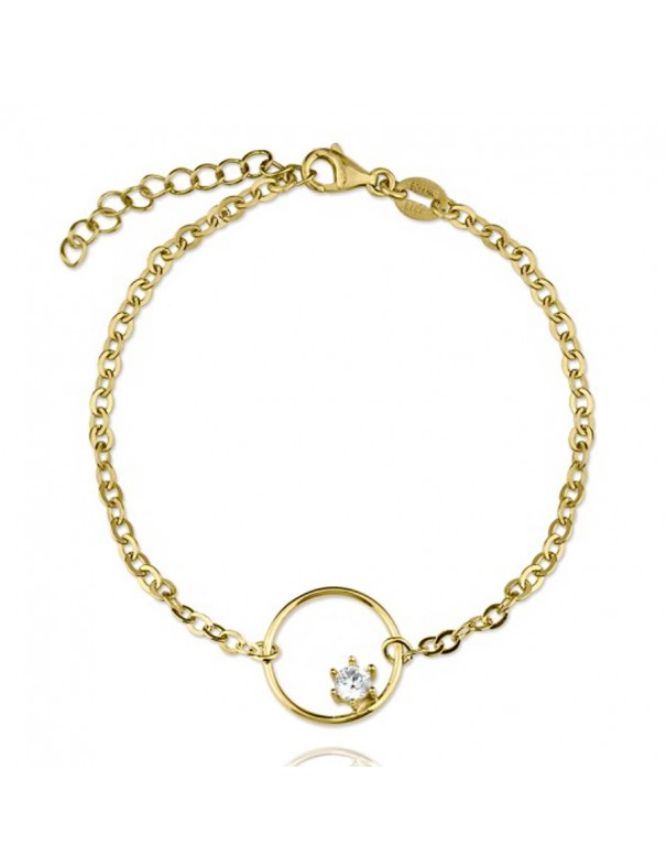 Pulsera de plata dorada aro 115350 para mujer. Es de plata dorada de primera ley de 925 mls con circonita. incluye cadena de ajuste. Garantía de tres años.