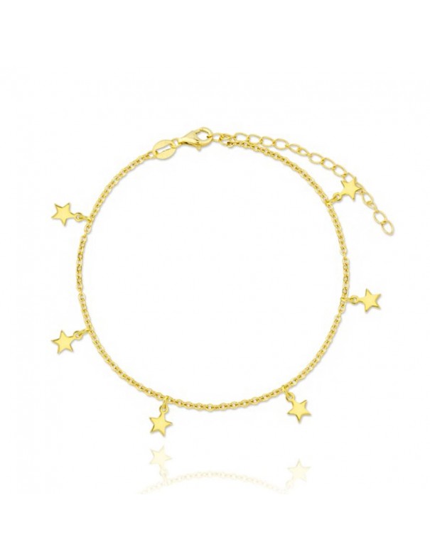 Pulsera de plata dorada Estrellas 115360. Está fabricada en plata de primera ley de 925 mls y bañada en dorado. Incluye cadenita de ajuste.