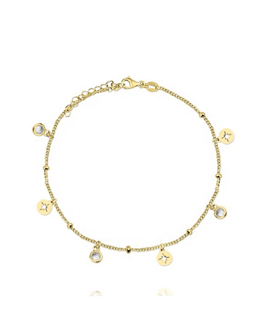 Pulsera de plata dorada para mujer 115371. Está fabricada de plata de 925 mls de primera ley. Mide 16,5 cm y lleva cadenita de ajuste.
