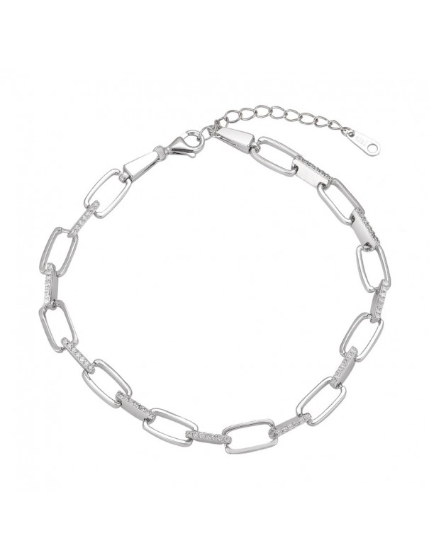 Pulsera de plata y circonitas para mujer 9114641. Es de plata de primera ley de 925 mls con circonitas y eslabones rectangulares. Además cuenta con cadenita adicional para ajuste. Garantía de tres años.