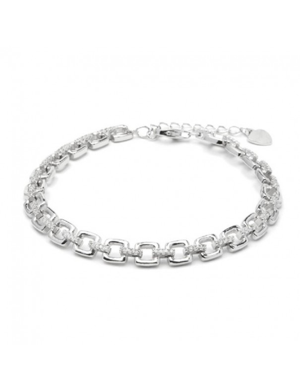 Pulsera Luxenter Kakoi Plata Circonitas BX4720000. Creada en plata de ley con baño de rodio, compuesta por eslabones de formas casi cuadradas decorados con circonitas brillantes en cada anilla. El color es plateado con brillo de piedras blancas y la forma es de cadena de eslabones geométricos. Lleva cierre de mosquetón y anillas alargadoras para ajustar la longitud de 17 cm + 3 cm.