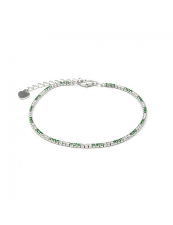 Pulsera Luxenter Oriem Plata Verde BX4813000. Creada en plata de ley 925 con acabado de rodio y circonitas brillantes en tonos blanco y verde, diseño delicado de cadena con detalles de piedras. La forma es de cadena fina con aplicaciones de piedras. Lleva cierre de mosquetón y la longitud es 17 cm + 3 cm de extensión para ajuste cómodo.