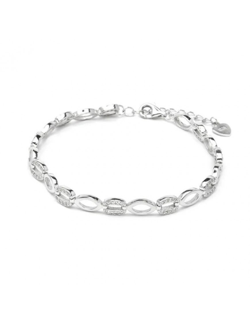 Pulsera Luxenter Nakel Plata BX4740000. Joya elegante y versátil elaborada en plata de ley 925 con un refinado acabado en rodio, que aporta mayor brillo y resistencia al desgaste. Su diseño está compuesto por eslabones planos intercalados con eslabones con circonitas que crean un estilo moderno y sofisticado, ideal para llevar sola o combinada con otras pulseras como parte de un look actual. Gracias a su estética atemporal y su acabado de alta calidad, es una pieza perfecta tanto para el día a día como para ocasiones especiales, aportando un toque de personalidad y elegancia a cualquier conjunto.