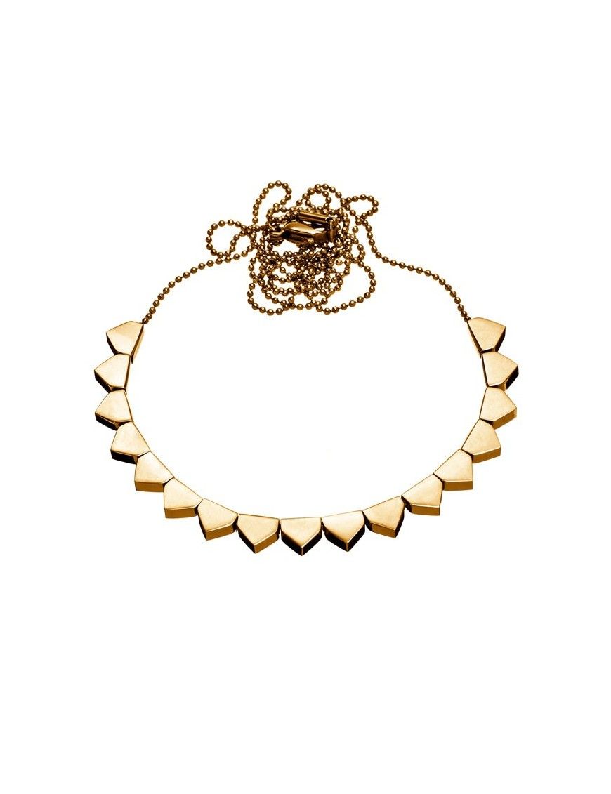 Collar Edblad acero mujer 83300. Se trata de collar fabricado en acero inoxidable chapado en dorado. La zona de los pinchos mide 11,5cm, y la longitud total del collar es de 49cm. El collar está formado por 17 pinchos o dientes, y cada uno tiene unas dimensiones de 6mm de largo y ancho y 3mm de grosor. La garantía de este artículo es de 2 años.