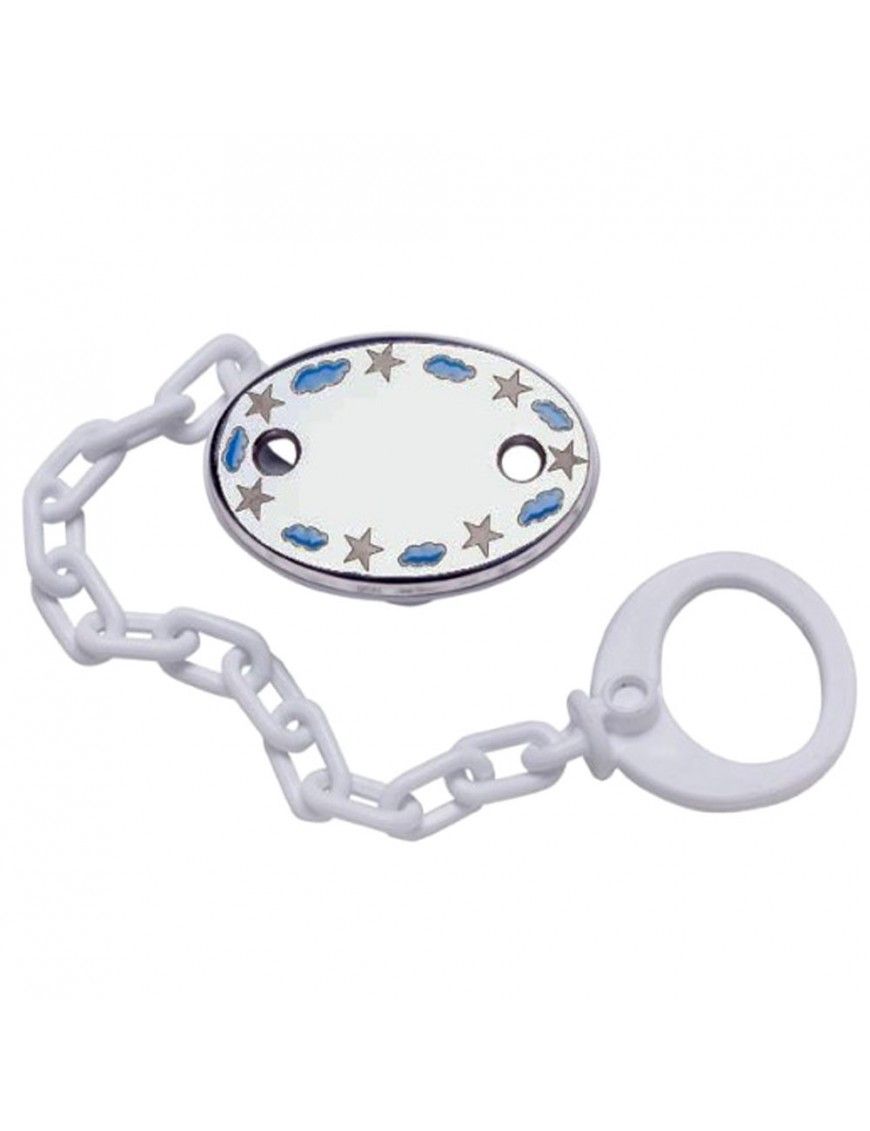 Chupetero Plata Nubes 9A0158ES, en plata de primera ley 925mls. Medidas de 45X34mm. Cadena de plástico de 14,5cm.