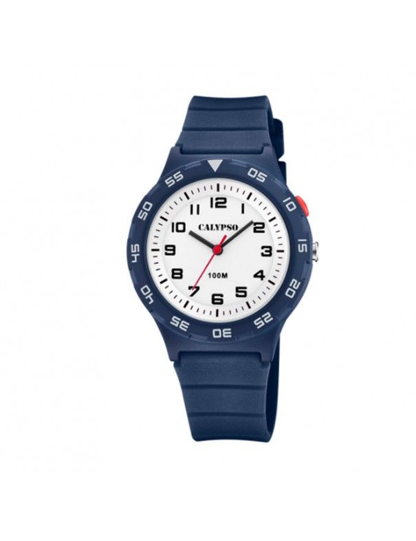 Reloj Calypso Sweet Time Niño K5797/3, analógico con luz. Caja de 36mm de diámetro de plástico y pulsera de caucho azul. Sumergible a 10ATM, por lo que es apto para ducha y baño con inmersión.