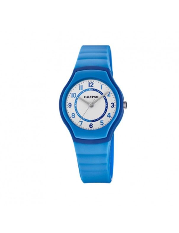 Reloj Calypso Junior Collection Unisex K5806/6, analógico con segundero. Caja de 31mm y pulsera de caucho azul. Sumergible a 5ATM, por lo que es apto para ducha y baño sin inmersión.
