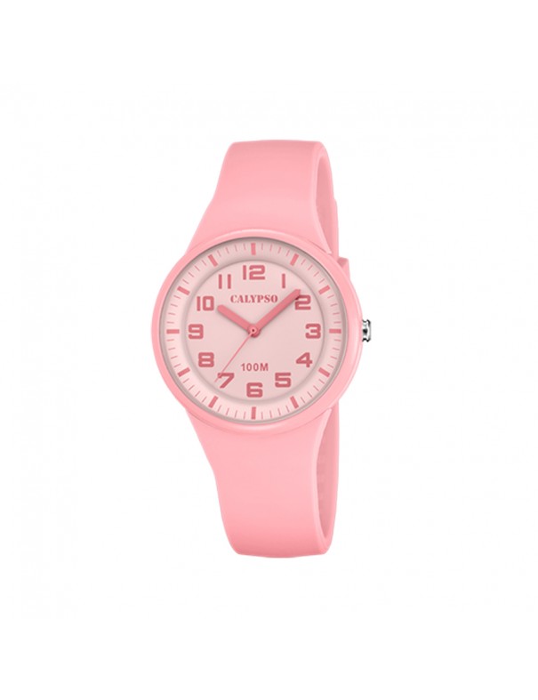 Reloj Calypso para niña K5851/2 Rosa. La esfera es de caucho y mide 28 mm de diámetro. La pulsera es del mismo material con hebilla. Es sumergible a 10ATM por lo que permite el buceo sin botella. Garantía de tres años.